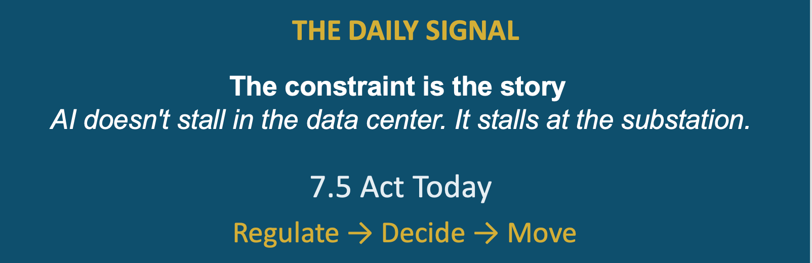 Write down the single binding constraint to your AI deployment — power, permits, or people. Pick one. Then assign one executive with the authority to remove it before Friday.